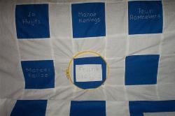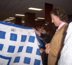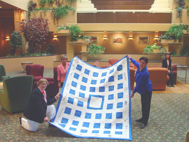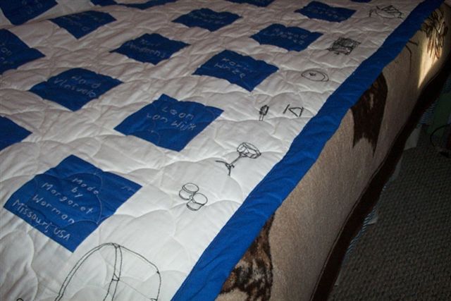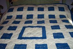 Row after row of blue squares were pieced together on my sewing machine. Names had to wait till they were all sewn