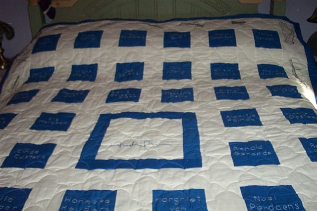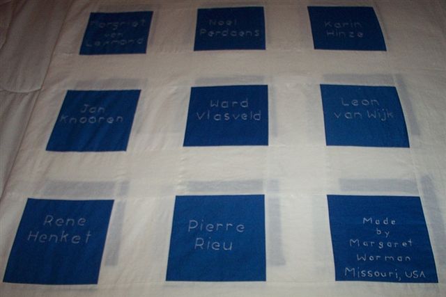actually, Sonja is to blame for the quilt. We were at the motel before the concert. with several Andre friends, Sigrun