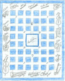 center square with Andre’s name. It looked kind of plain, so I drew orchestra instruments around the border. I have a