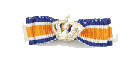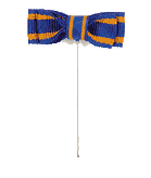 attached to a ribbon which is orange with white and blue border stripes. The way the badge