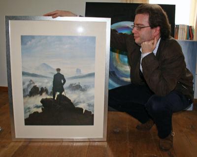 Marc Rieu with his favorite painting: 'Der Wanderer über dem Nebelmeer' by the German painter Caspar David Friedrich