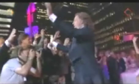 Fun, but it must have been a quite a feat, with those dresses!!) The audience is cheering, chanting André, André…...