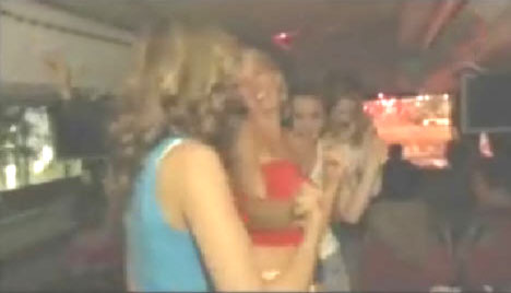 now in grey. The bus is bumping. Kerstin and the wardrobe lady Jaqueline Treffers