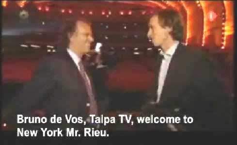 (a brand new Dutch TV sender). Reporter greets: Welcome to New York, Mr. Rieu!