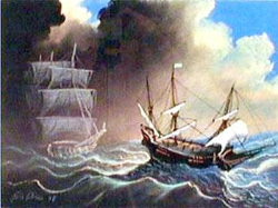lookout scream out in terror, did he realise that they had sailed straight into a fierce storm. The captain